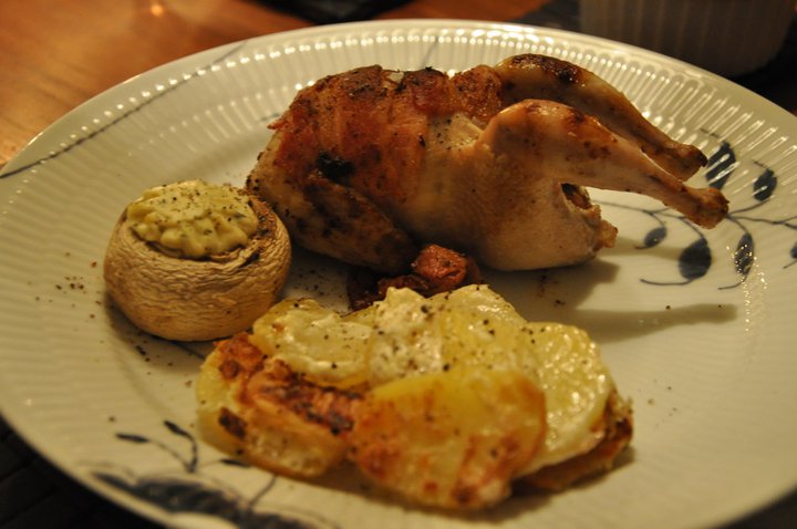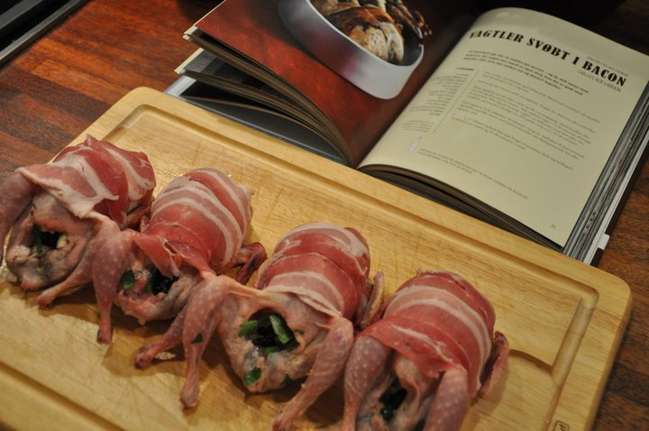 Den første ret jeg har lavet fra ‘Fransk Simremad’ er vagler svøbt i bacon eller ‘Cailles aux lardon’ som retten hedder på fransk. Det smagte skønt.
