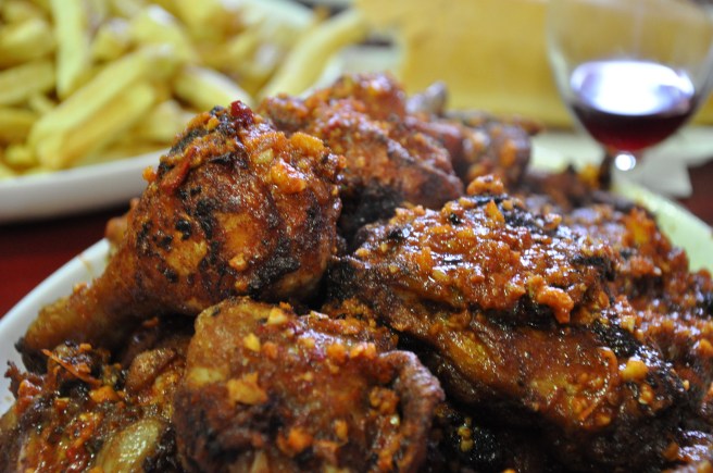En anden specialitet som vi altid skal spise på Tenerife er grillet kylling i mojo salsa og den skal spises på den restaurant oppe i bjergene hvor mine svigerforældre er kommet igennem 30 år. Restauranten serverer kun denne ene ret med pomfritter til og der er altid fuldt hus.