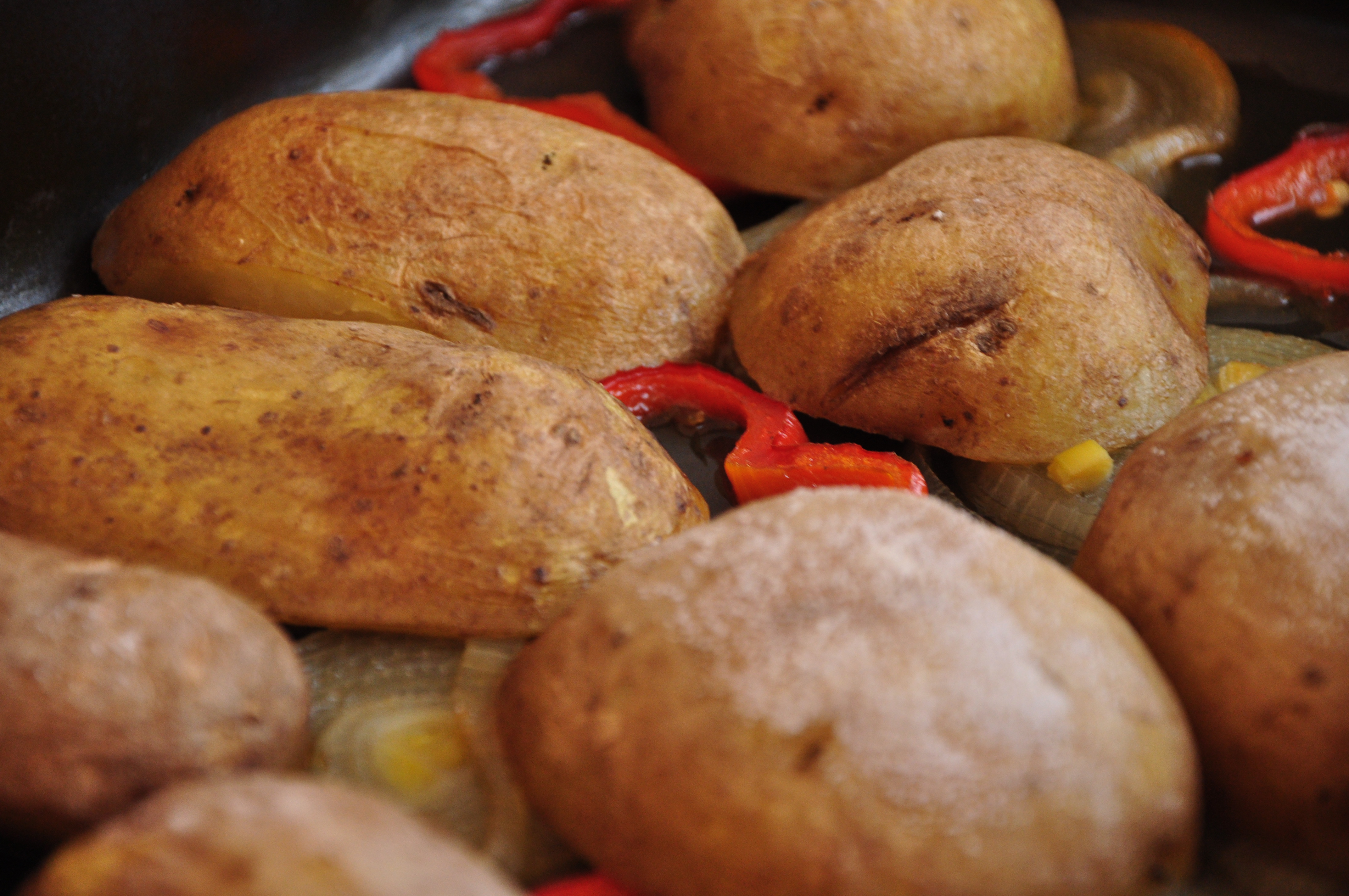 2 thoughts on “Bagekartofler med peberfrugt (Patatas al horno)”