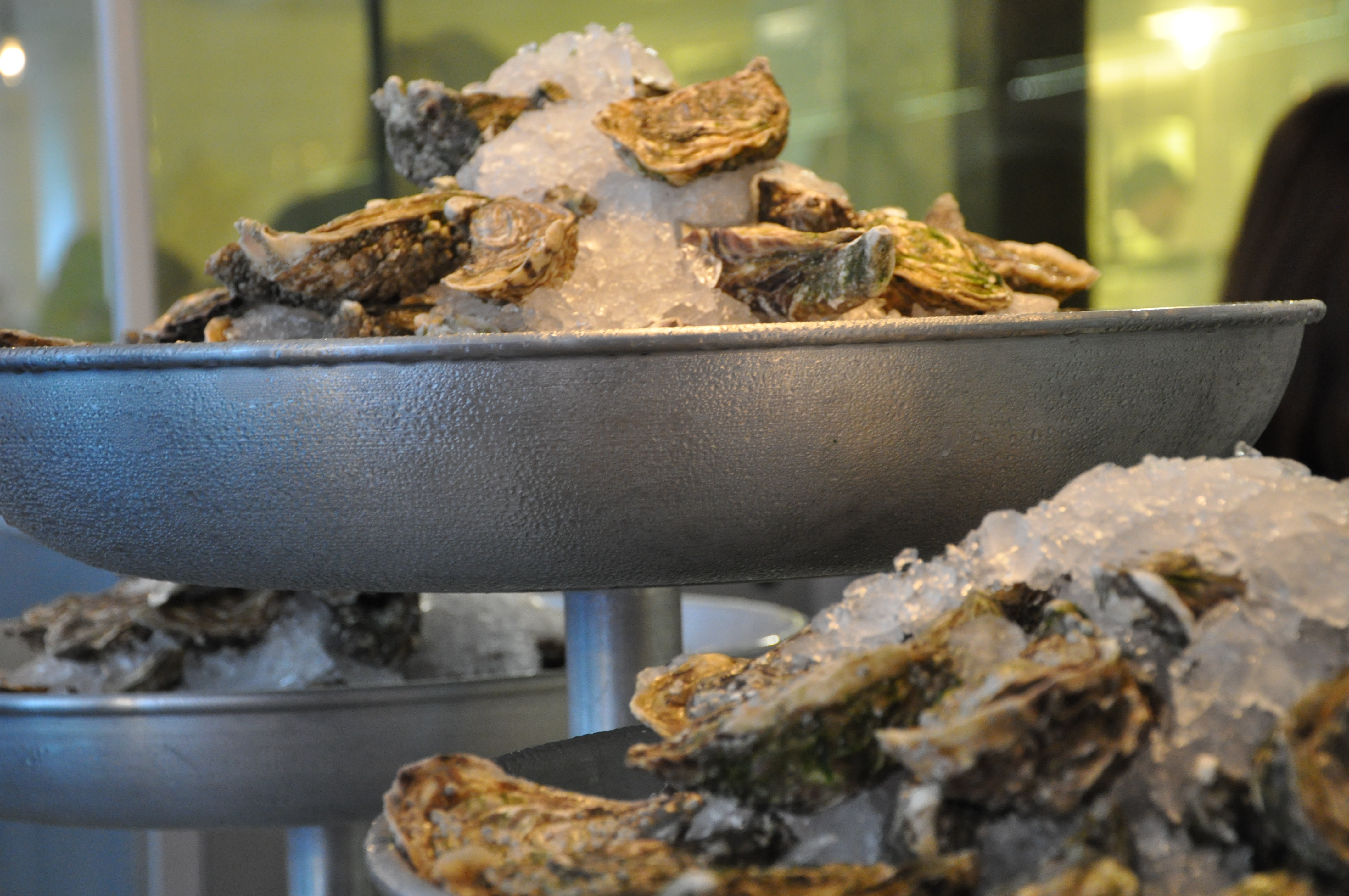 Der var som sagt fuldstændig booket op denne fredag aften men vi var heldige at få de to sidste pladser i baren. Det var helt super, det var nemlig også her fadene med skaldyr blev anrettet så vi havde altså første parket til slagets gang og kunne følge med i det hele.