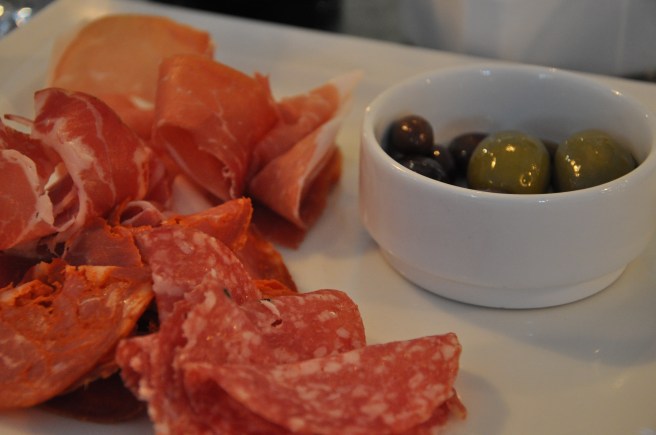 Her smuttede vi ind og bestilte en lækker Muscadet hvidvin som kom samtidig med en lækker tallerken sortfods skinke og hjemmebagt brød – uhaa det var gode sager.