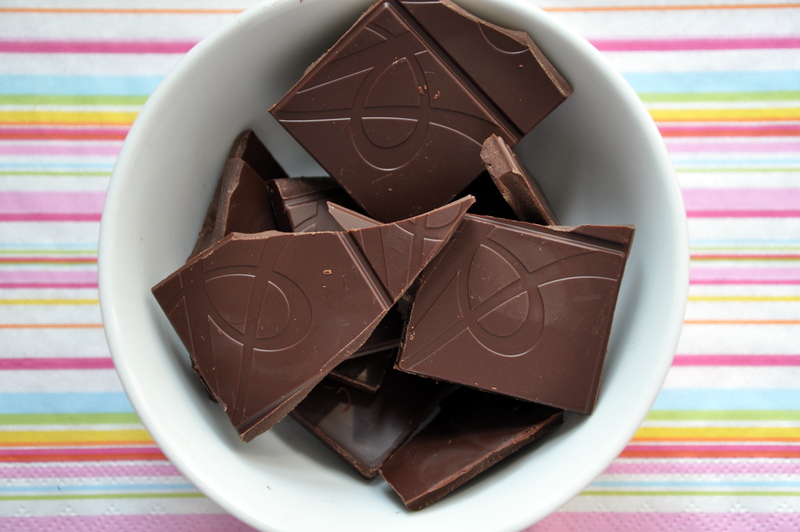 Smelt smørret i en gryde og tag gryden af varmen når alt smørret er smeltet. Bræk chokoladen ned i det varme smør og rør rundt. Lad det stå og smelte helt.