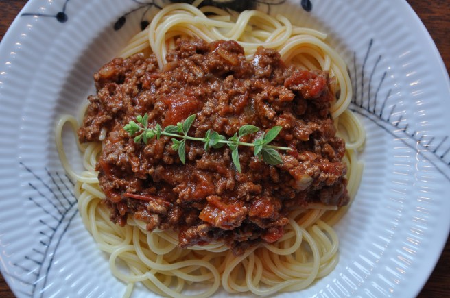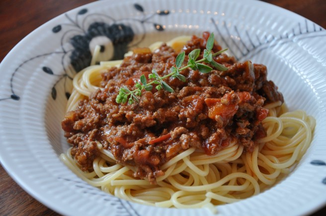 Enkelt, nemt og lækkert med friske krydderurter fra haven. En hurtig spaghetti bolognese når man ikke lige har flere timer til at koge en sublim ragout.