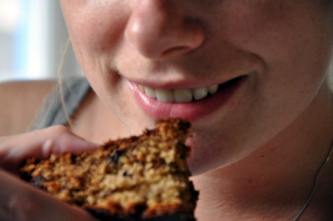 Hæld dejen i en rugbrødsform og bag kagen i ovnen i 35-40 minutter ved 180 grader. Kagen bliver ret mørk på toppen og skal være en smule blød indeni når du tager den ud.