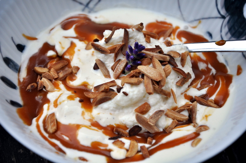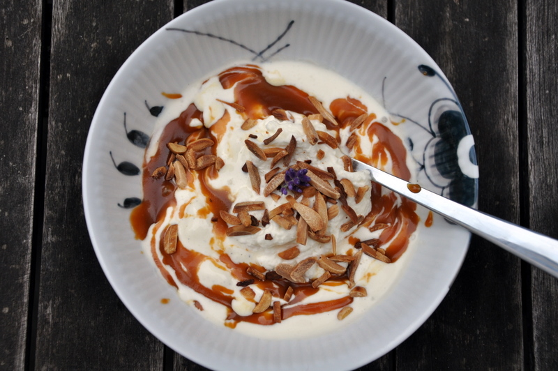 Jeg siger farvel til sommeren med en søndag sundae is med hjemmelavet karamel sauce. isen er en vanille is kørt på ismaskinen og så frosset færdig i fryseren – uha det er gode sager.