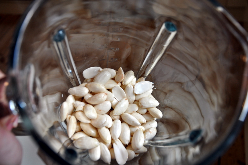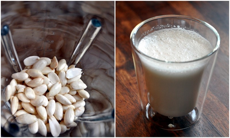 Start med at lave mandelmælken. Det gøres ved at smutte mandlerne og lægge dem i blød et par timer. Herefter blendes mandlerne i en blender og vand tilsættes indtil man har den ønskede tykkelse. Der går cirka 2 dele vand til 1 del mandler. Når mandelmælken er færdig hældes den gennem en si og smages til med salt.