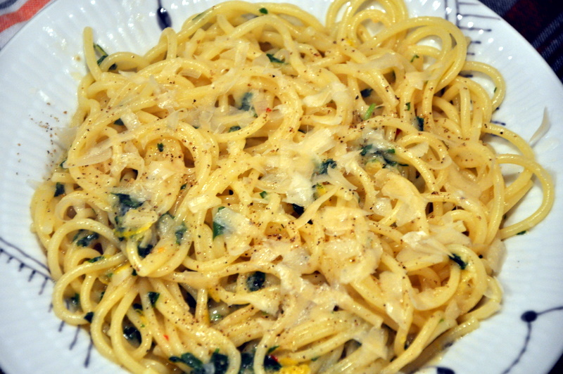 Spaghetti med chili, hvidløg og citron – 2 personer