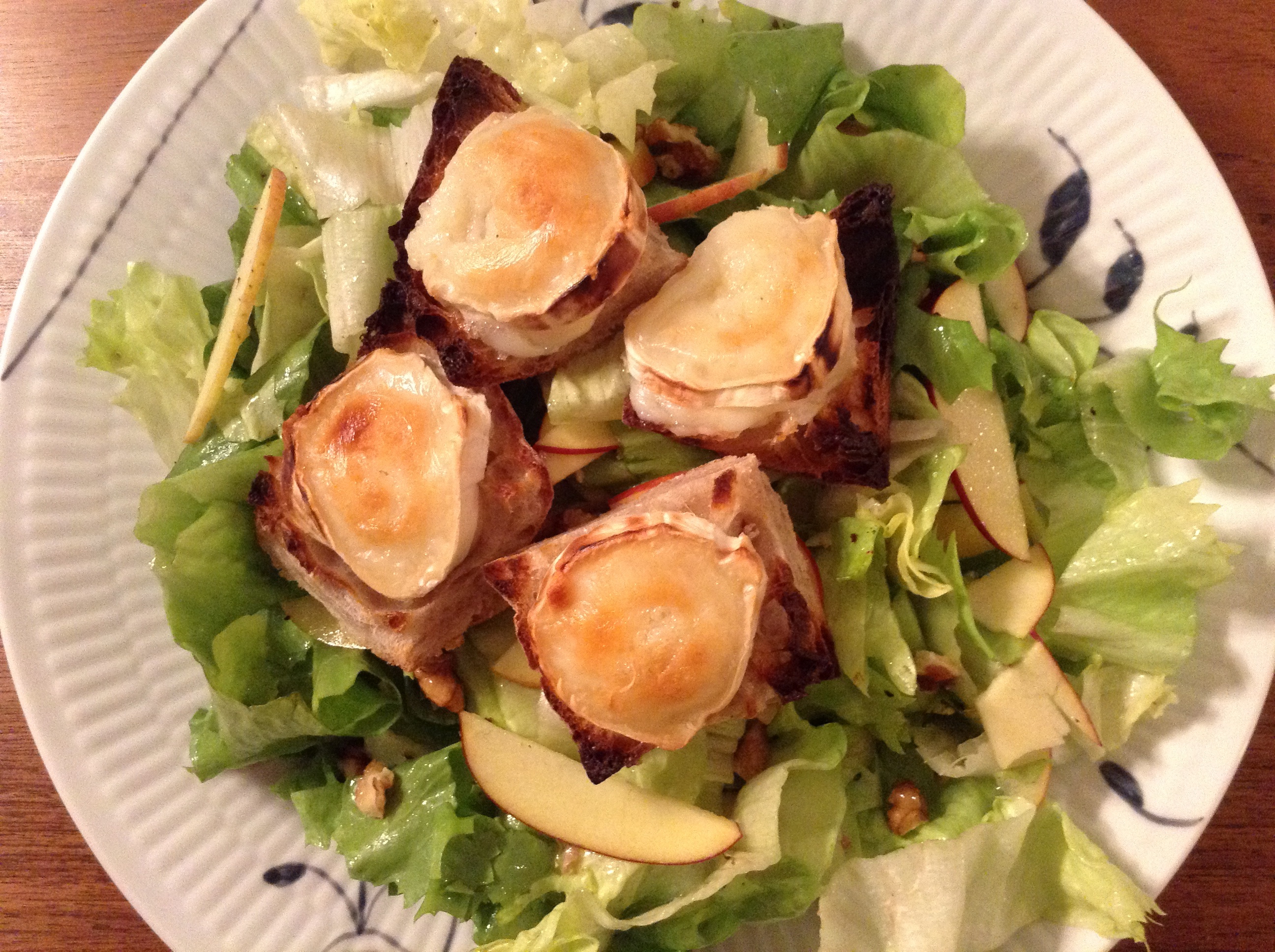 I går spiste jeg denne skønne salat med gedeost croutons, æble og valnødder til aftensmad og det kan virkelig anbefales. Egentlig synes jeg at pære passer bedst sammen med gedeost men i går var det altså æble som havnede i salaten.