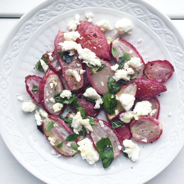 Bagte radiser med feta og friske krydderurter