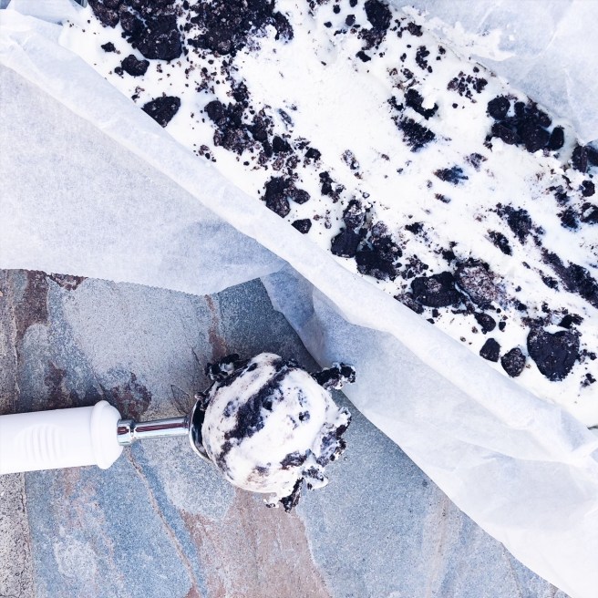 Det er næsten tarveligt at kalde det for en opskrift for det er simpelthen så nemt at lave. Alt man skal bruge er en dåse kondenseret mælk, ½ liter piskefløde og så det fyld man lyster. Jeg fyldte min is med knuste oreos, mums. Næste version bliver med peanuts og salt karamel.