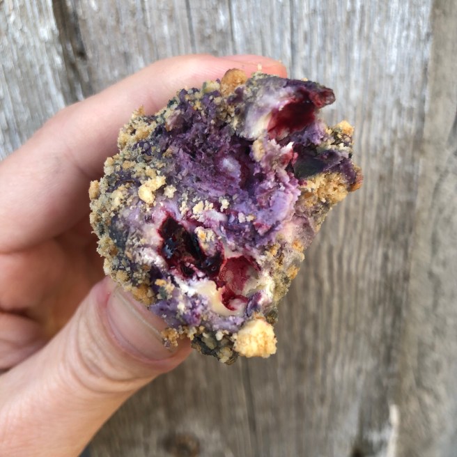 Jeg elsker cheesecake, og selvom de her små bidder er lidt af en snyde ”cheesecake” så smager de stadig helt fantastisk. Gør dig selv den tjeneste og køb svenske eller danske blåbær, det er altså bare noget helt andet end de normale fra Sydamerika. Så små og fine og blå hele vejen igennem. Jeg købte dem på frost i IRMA. Original opskriften stammer også fra et ældre nummer af IRMA’s krydderiblad som jeg så har ændret lidt da der var ingefær i den oprindelige opskrift.