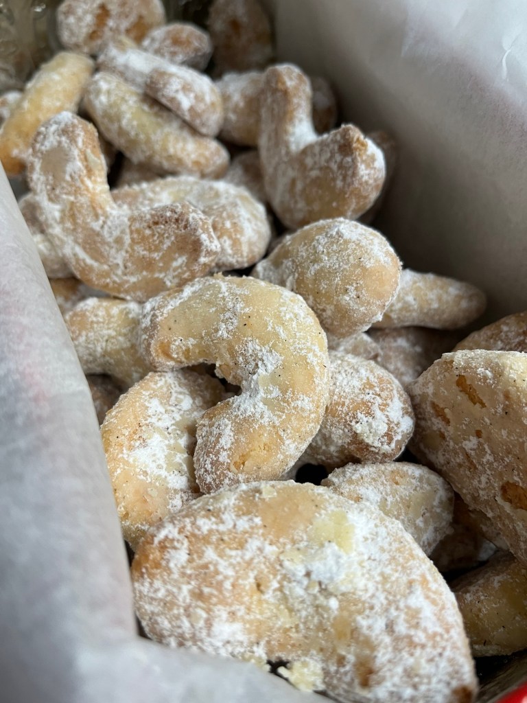 2. Rul pølser af dejen som så skæres i mindre pølser på ca. 3 cm som derefter formes til halvmåner.