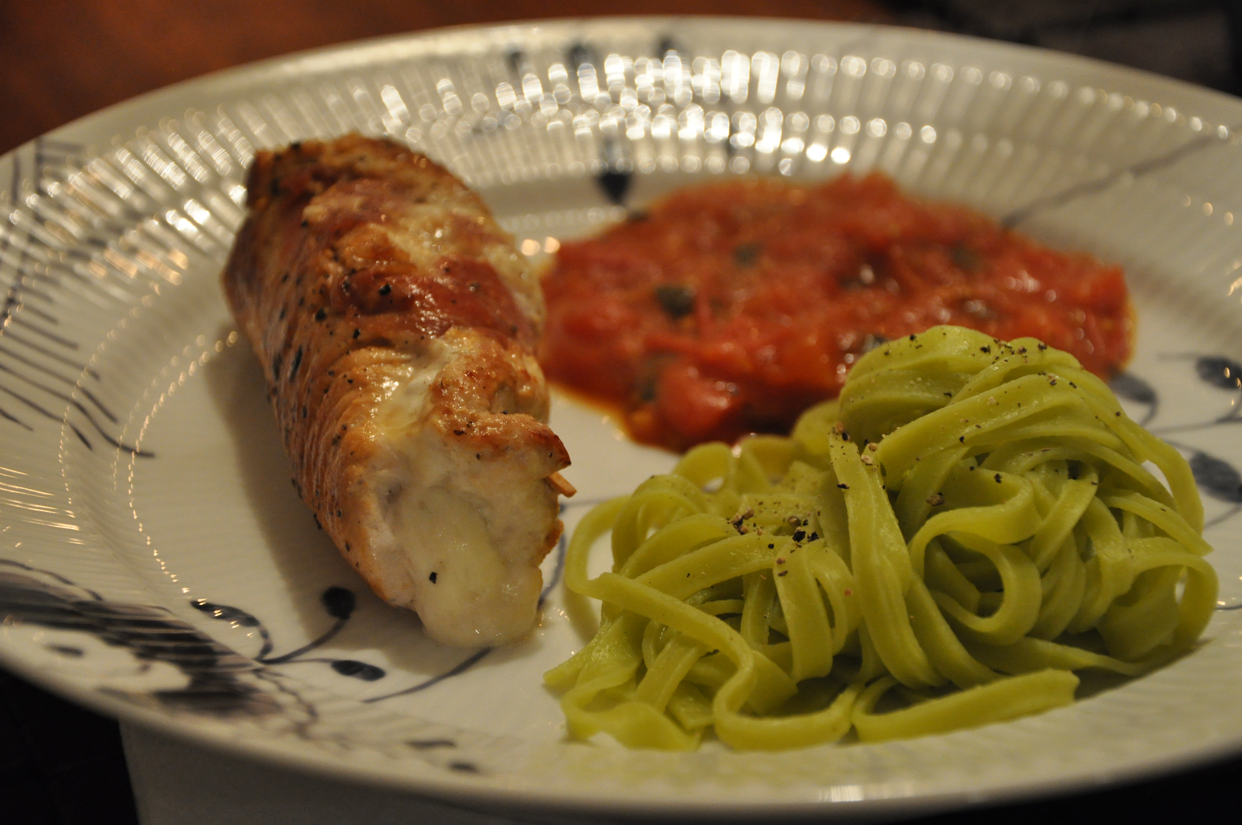 Hæld saucen over kyllingen og sørg for at alle stykkerne bliver dækket. Når det hele er dækket skrabes det meste af saucen af toppen af kyllingestykkerne, ellers bliver skindet ikke sprødt.