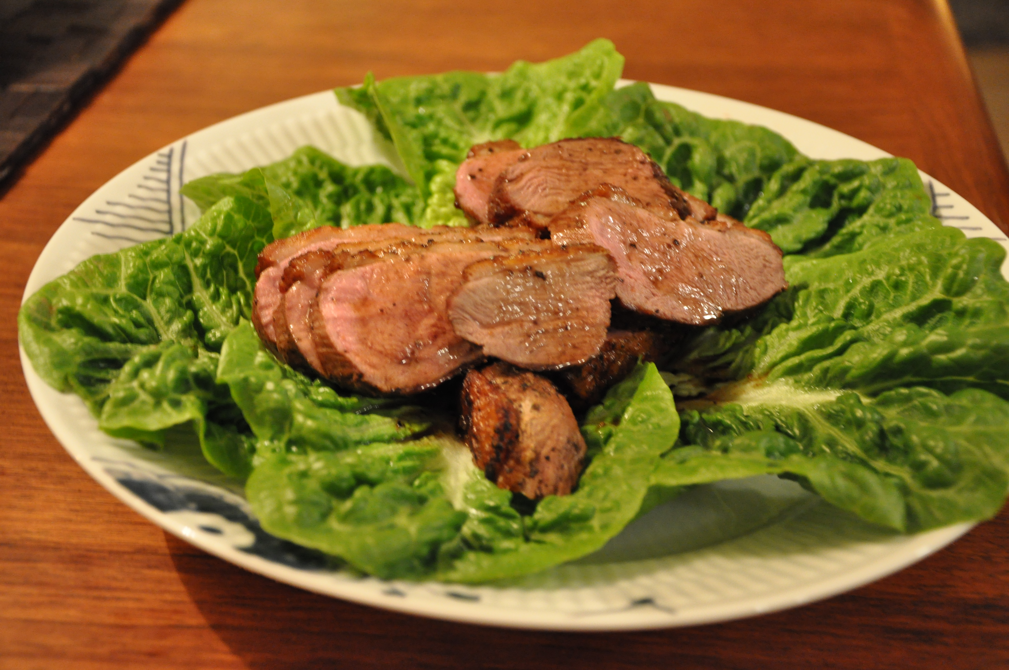 Vi besluttede derfor at vente med den hjemmelavet lasagne til iaften og lavede andebryst på en romainesalat istedet. Det er Sebastian der er den store kød-steger herhjemme og det gør han altså bare SUPER. Det var så mørt og lækkert.