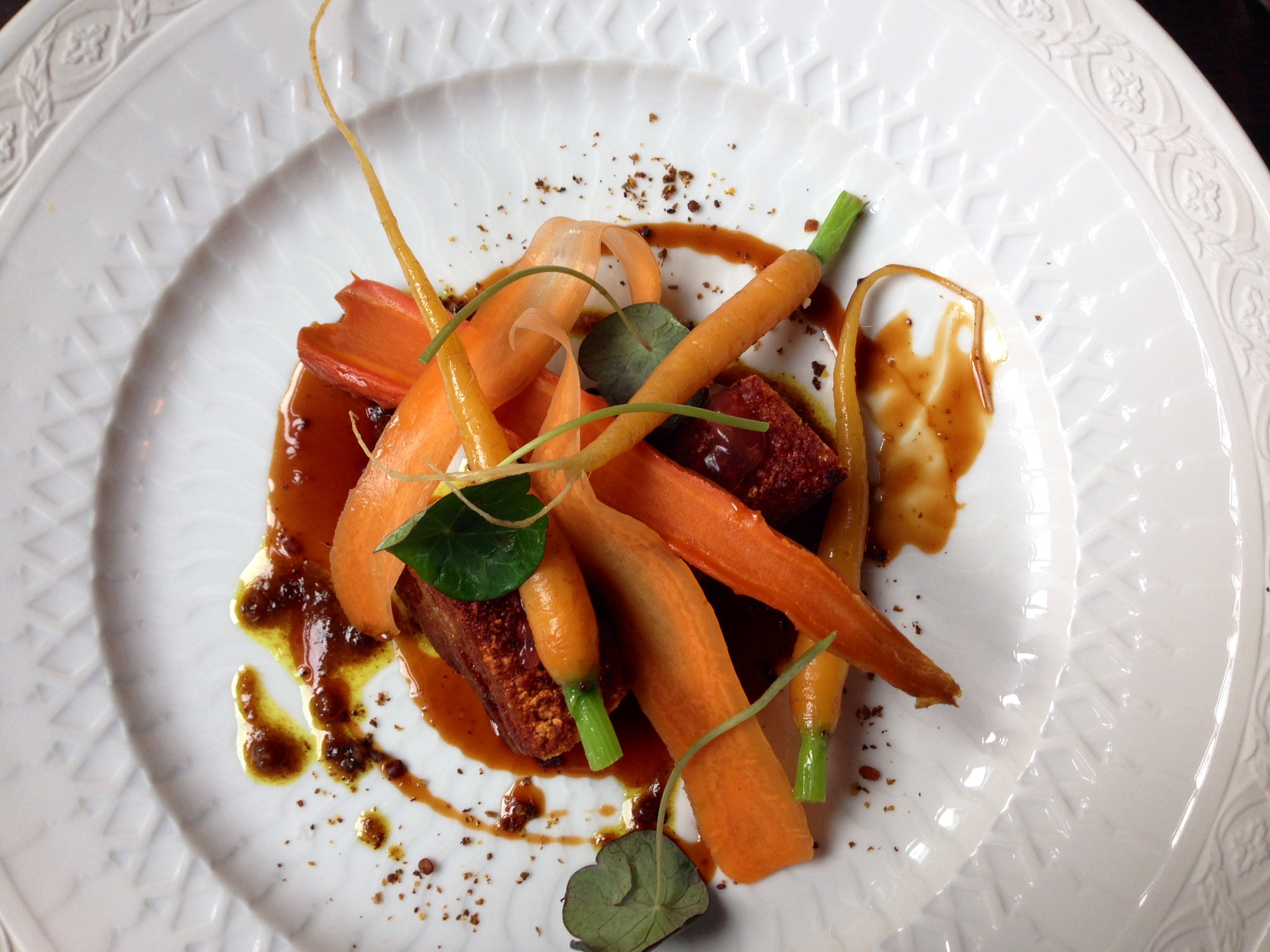 Stegt bryst af skovgris med karotter, vadouvan og dehydrerede gulerødder