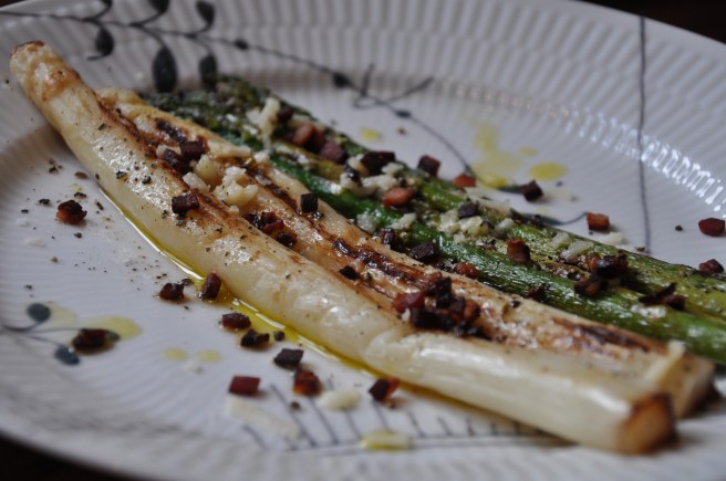 For et par uger siden var Sebastian i Tyskland og havde sæsonens første hvide asparges med hjem. Vi nåede ikke at bruge dem allesammen mens de var friske, så et par stykker røg i fryseren – de skulle bruges igår.