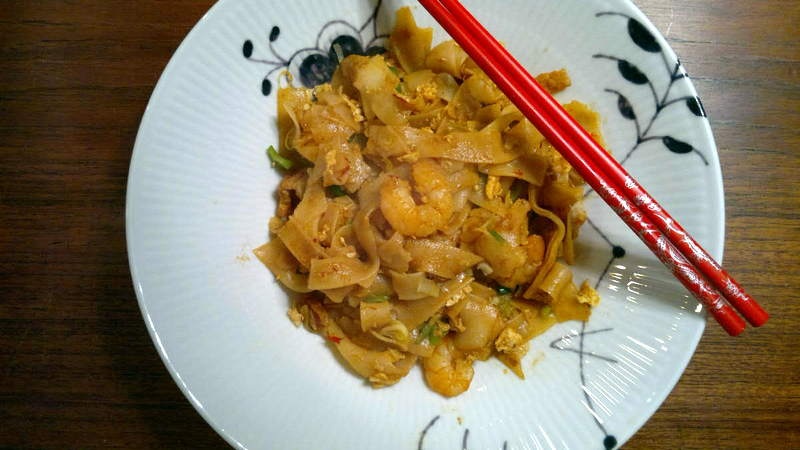 Char Kuey Teow er en malaysisk nudelret med flade risnudler stegt i en wok. I min version har jeg brugt store tigerrejer og bacon.