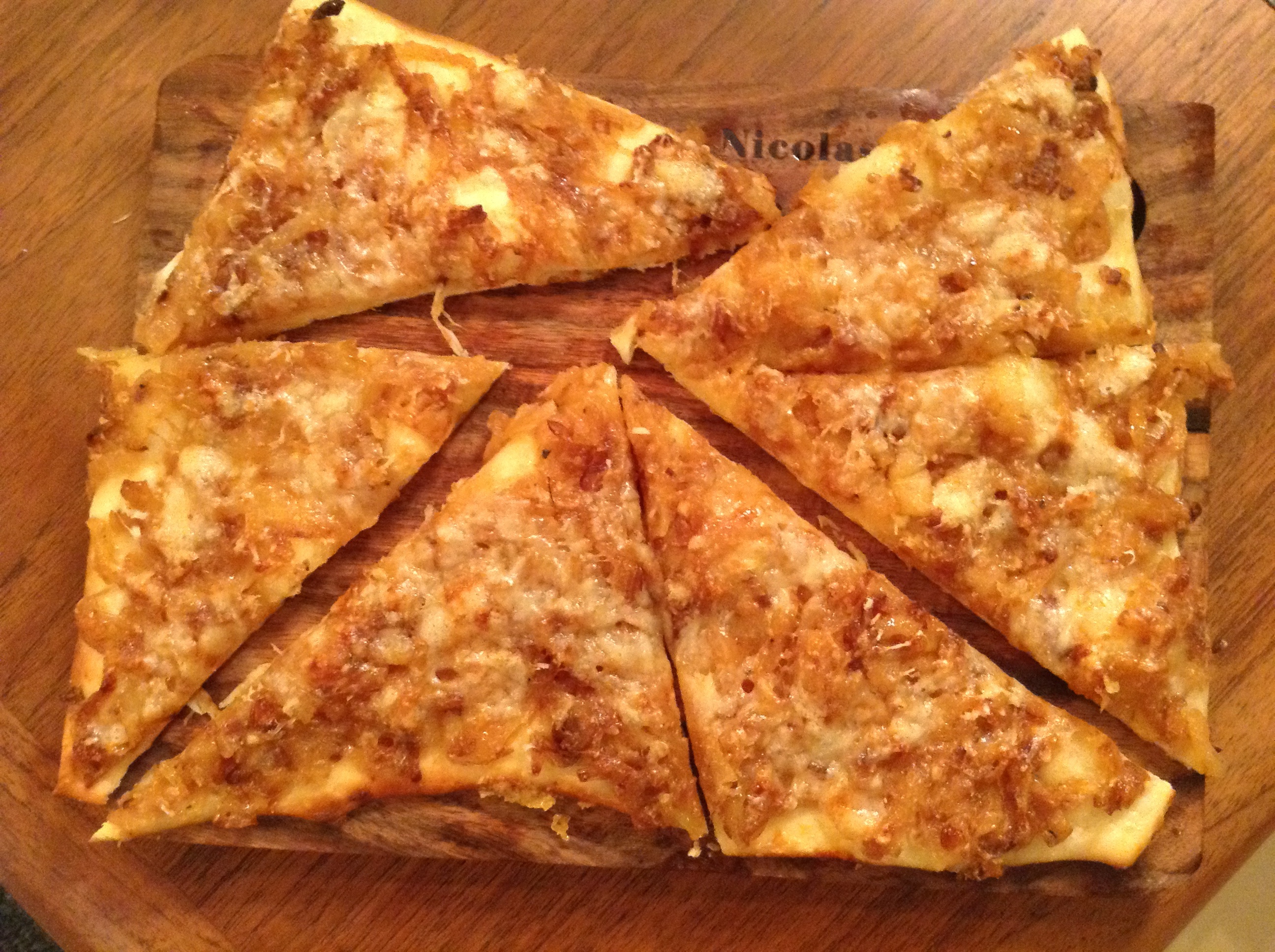Gratineret løgtærte oser langt væk af  Frankrig og får mit frankofile madhjerte til at drømme om Paris. Indtil mit næste besøg i byernes by, må jeg slå mig til tåls med løgtærten her. Tærten kan også laves med butterdej, men jeg foretrækker gærdej.